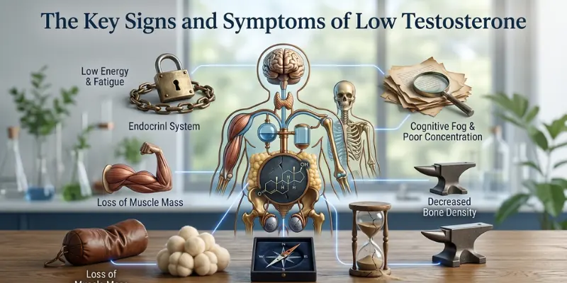 Testosterone influences cellular energy production and the regulation of cortisol (your primary stress hormone). When levels fall, the body’s ability to produce and sustain energy is fundamentally compromised.